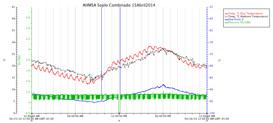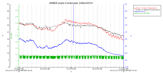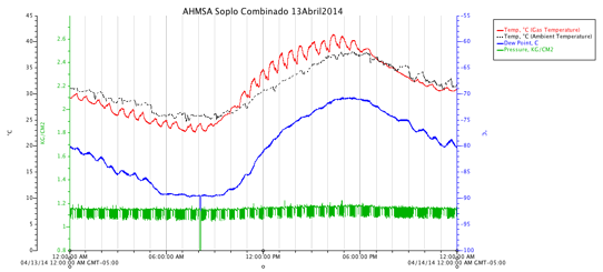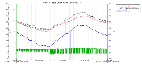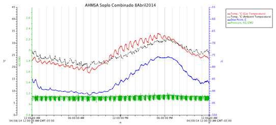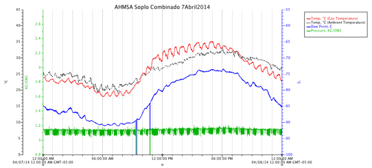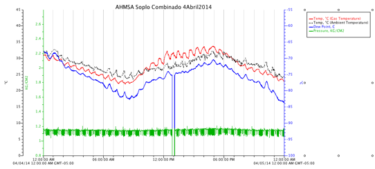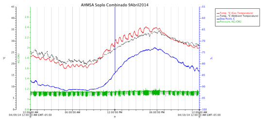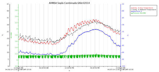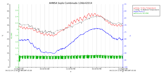 following values: dew point, gas temperature, ambient temperature and pressure.