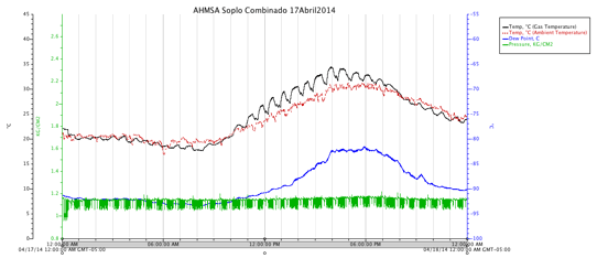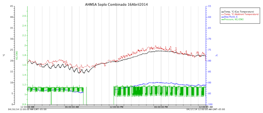 measurements for temperature, pressure, and dew point were recorded every 3 seconds